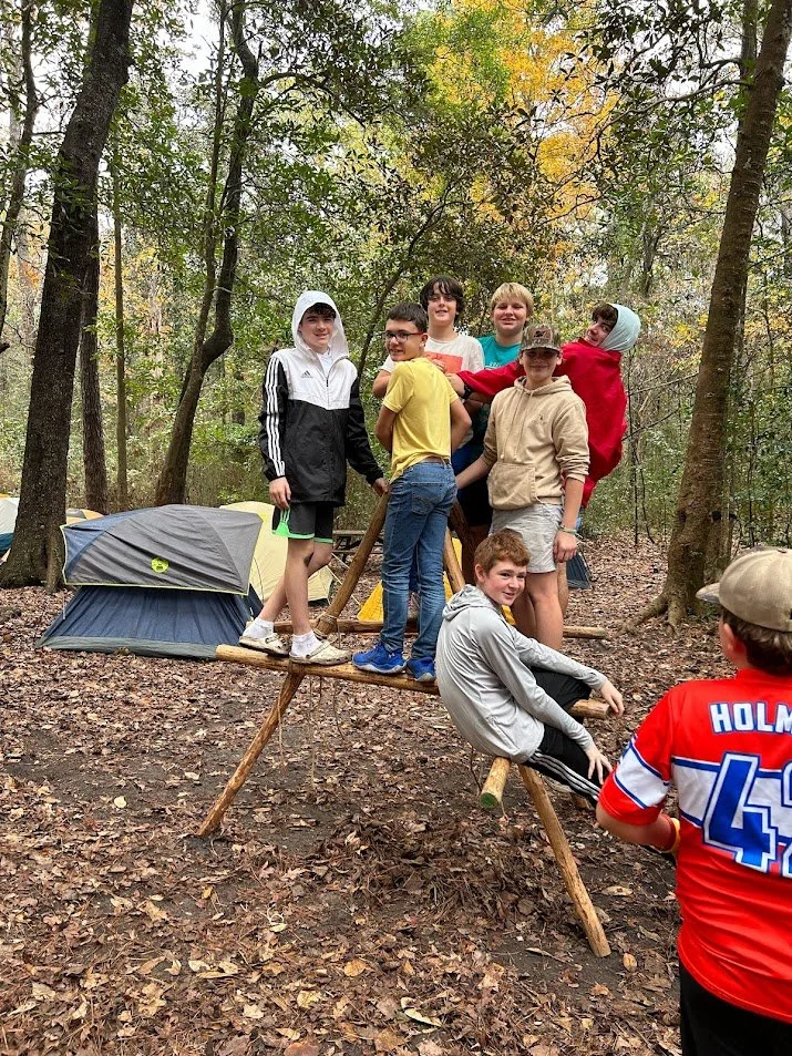 Scouts setting up their campsite.